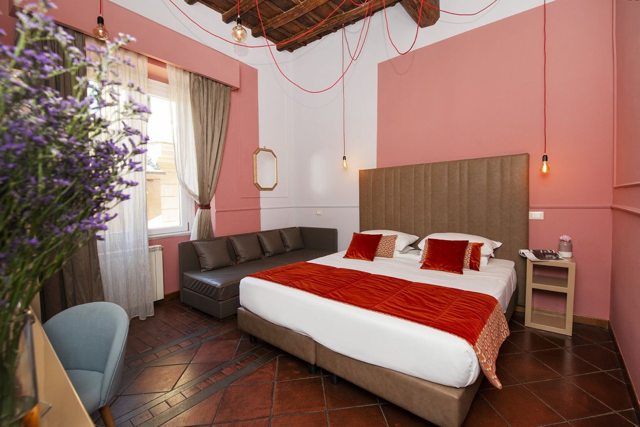 Ampie e luminose, dotate di tutti i confort per un soggiorno estremamente piacevole, le camere di Town House a Campo de Fiori uniscono servizi esclusivi a un contesto elegante impreziosito da elementi di design contemporaneo.